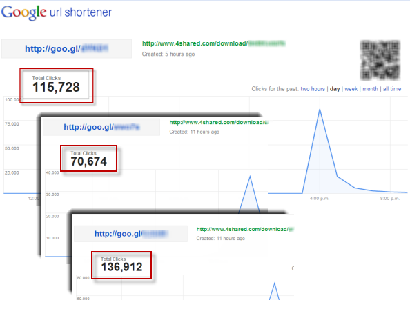 The impact in the first hours of the attack and the high volumes of users taken in by social engineering were reflected in the URL-address shortening system statistics, as can be seen in the following image: